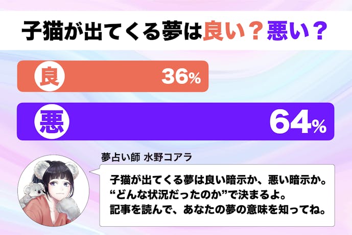 夢占い カエル 生まれる- この記事では〈拾う〉〈生まれる〉〈怪我〉など状況別、また〈1匹〉〈たくさん〉〈白猫〉〈三毛猫〉など子猫の数・種類別、さらに「遊ぶ」「抱っこ」「撫でる」など自分の行動別に様々な子猫の夢の意味と心理を解説します!また yotsuba > 占い > 夢占い > 夢占い子猫が出る夢 動物の赤ちゃんが生まれる夢は吉夢 です。飼っている犬や猫、小鳥など可愛いと思える赤ちゃんは良い知らせが届く暗示。一方で、ゴキブリやモンスターなど恐怖や嫌悪を感じる赤ちゃんの場合は「運気低下」 を意味します。 出産の状況で読み解く夢占い